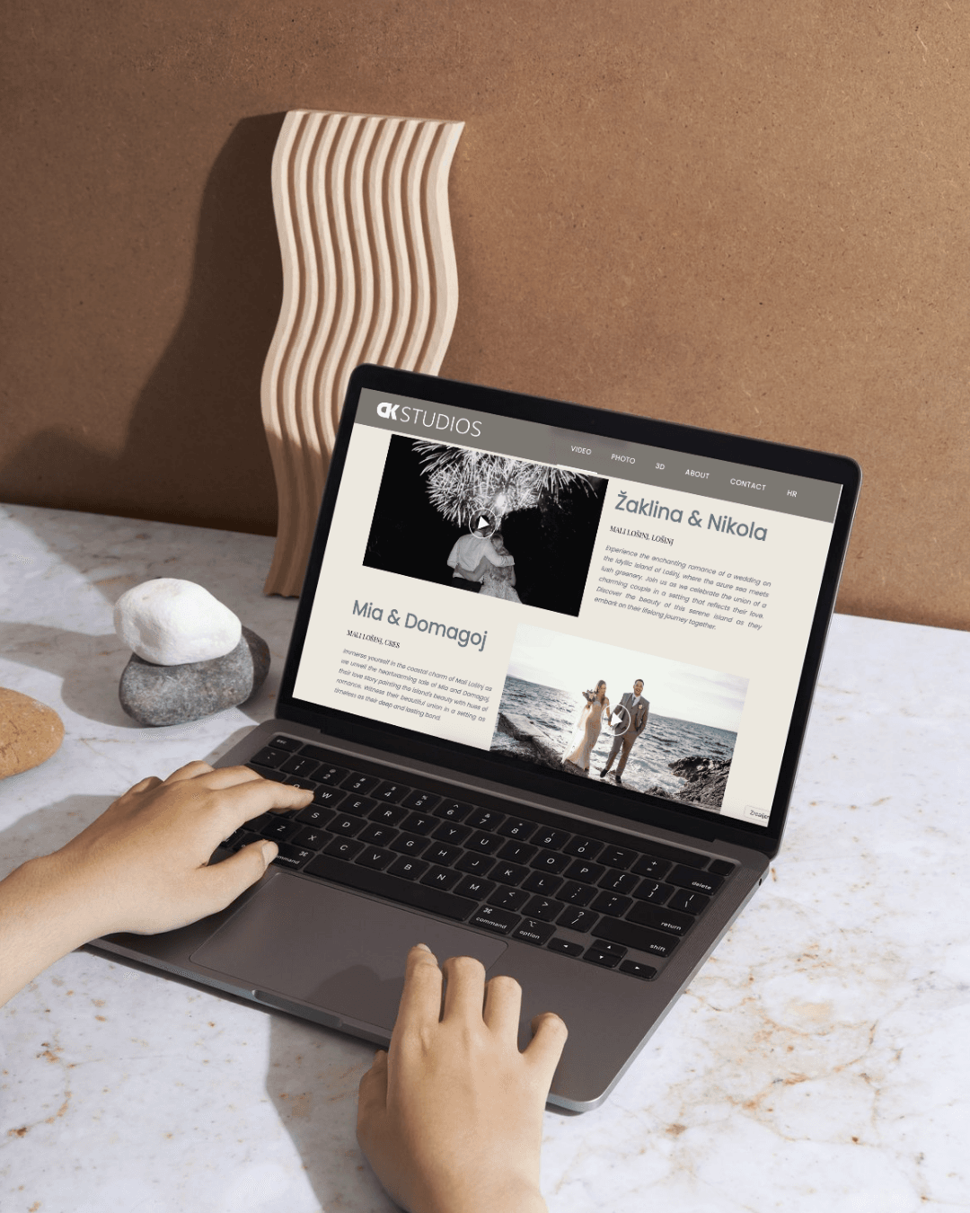 Kroz čiste linije i snažan ritam, logo odražava bit brenda DKSTUDIOS - kreativnost, emociju i tehničku preciznost iza svake scene. Web smo osmislili kao prostor koji prikazuje njihov rad u punom sjaju – pregledno, efektno i s filmskim osjećajem.
